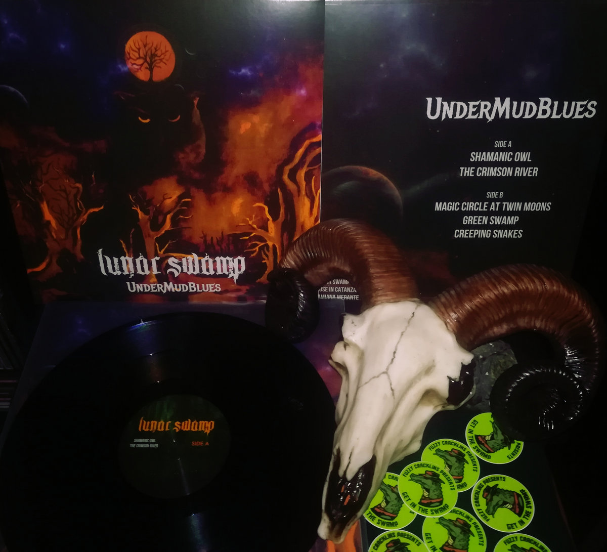 - Fuzzy Cracklins: "Lunar Swamp has dropped half an hour of fuzzy riffage with vocals that could only come from the darkest, dankest depths of The Swamp. These five songs will leave your ears dripping with swamp moss and reaching for your jug of Bayou rum, and paddling your boat across the fetid waters to your next crawdad boil."